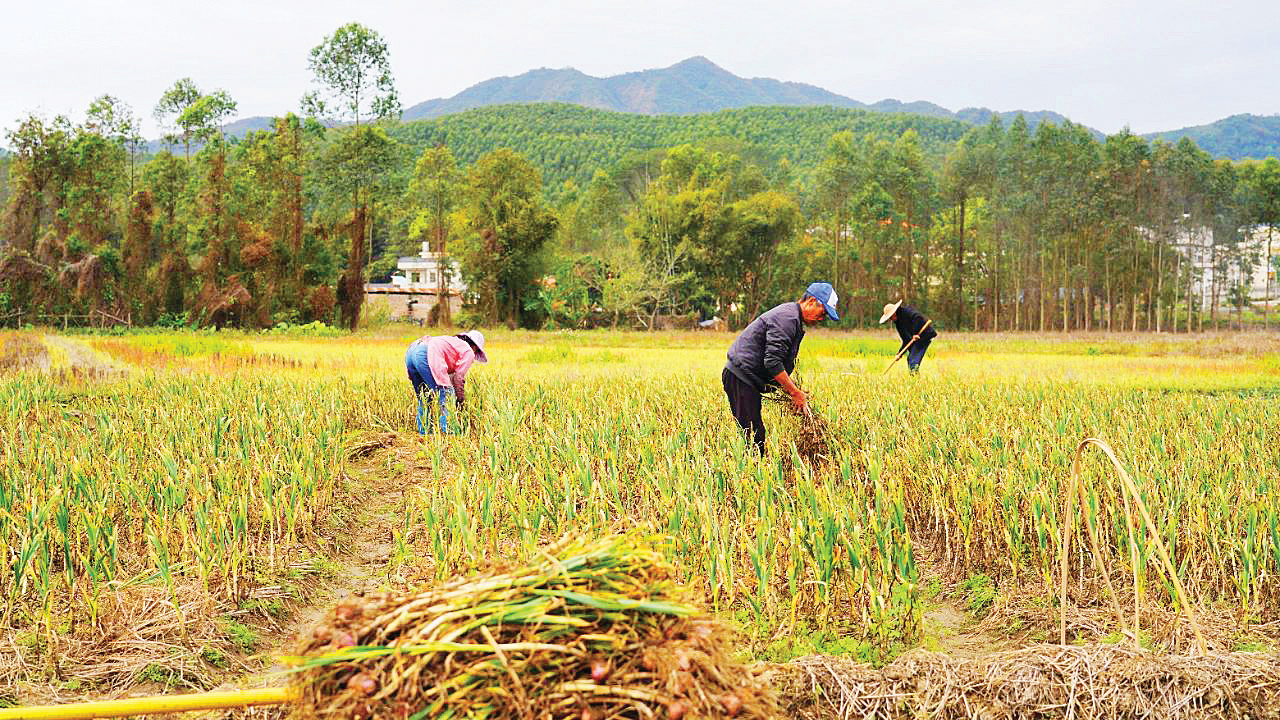 大圍村農(nóng)戶(hù)忙著采收大蒜。 惠州日?qǐng)?bào)記者黃宇翔 通訊員龍融心 攝