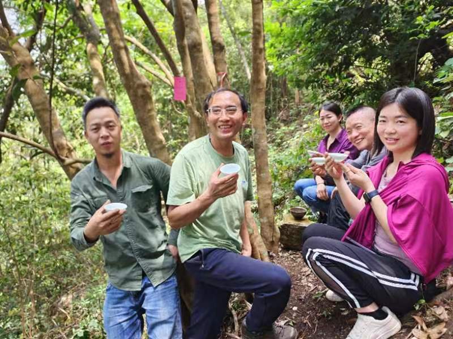 一路上,大家對(duì)古茶樹(shù)群落所在的地理環(huán)境、氣象氣候、周邊植物種群以及土壤等進(jìn)行觀察分析,對(duì)古茶樹(shù)的分布情況、生長(zhǎng)形勢(shì)和采摘條件等進(jìn)行了調(diào)研,并嘗試采摘。