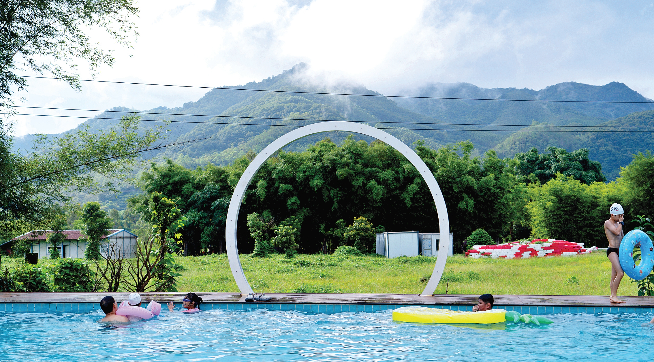 從G355線拐入高沙村的一條村道,一棟白墻鑲嵌大幅玻璃落地窗的嶺南風格民宿映入眼簾。這座名為知返林·竹語間的民宿共有29間客房,每間房都配套溫泉暖湯。平日里,民宿入住率能達到八成,逢節(jié)假日經常是滿房狀態(tài)。說起開辦民宿的初衷,民宿負責人陳沖坦言,早年在外發(fā)展疲于奔波,眼看家鄉(xiāng)溫泉旅游業(yè)日漸興旺,便毅然決定回鄉(xiāng)創(chuàng)業(yè),于2022年正式運營民宿。得益于此,他找回了人生奮斗的新希望。