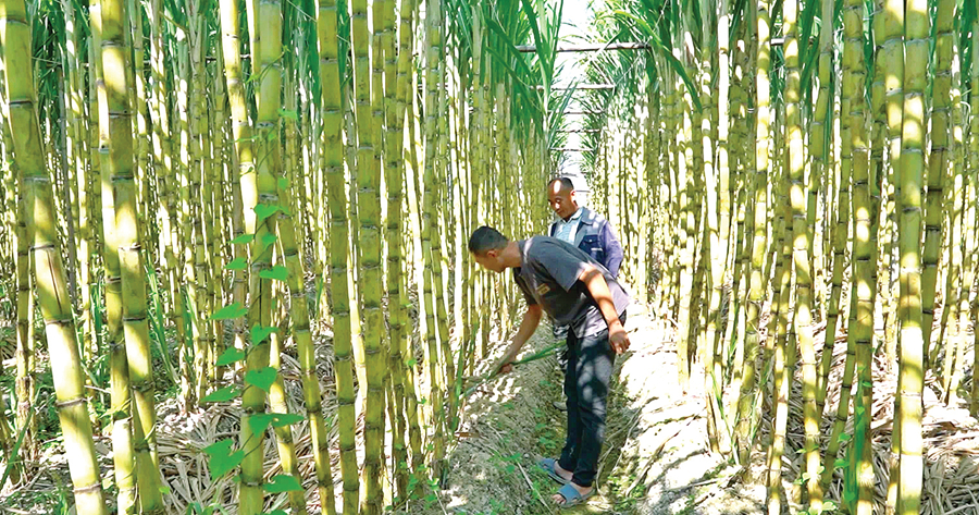 甘蔗種植并非易事,需要種植戶投入大量的精力和心血。每隔一段時(shí)間,林元蘇就要組織工人進(jìn)行剝?nèi)~、施肥、扶正、捆綁等工作。記者在現(xiàn)場(chǎng)看到,幾十名本地村民正穿梭在甘蔗林間,他們有的手持鐮刀,熟練地剝?nèi)ジ收岬睦先~;有的則揮舞著鐵鍬,為甘蔗施肥松土。生動(dòng)的勞動(dòng)畫面構(gòu)成了一幅美麗的鄉(xiāng)村豐收?qǐng)D景。