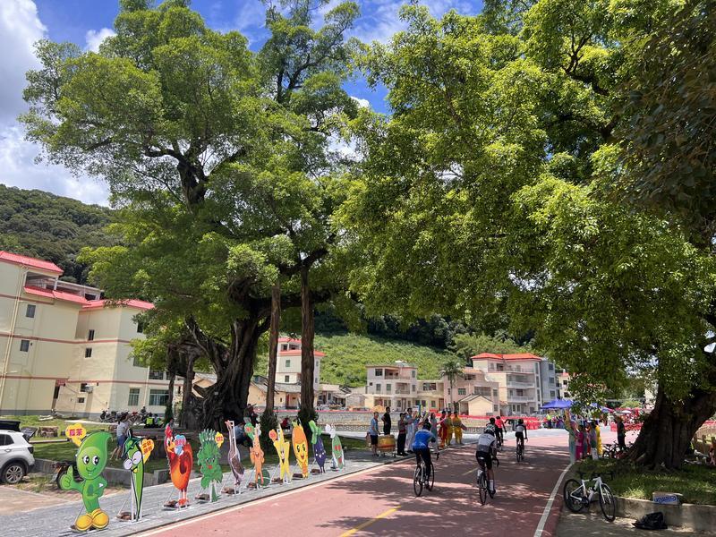 “整齊美觀的農(nóng)房掩映在綠樹間,整潔的柏油路串起成片的稻田,尤其是這棵茁壯茂盛的大榕樹,讓人感受到滿滿的生命力。”騎手陳先生在接受記者采訪時,對中心村的人居環(huán)境豎起了大拇指。