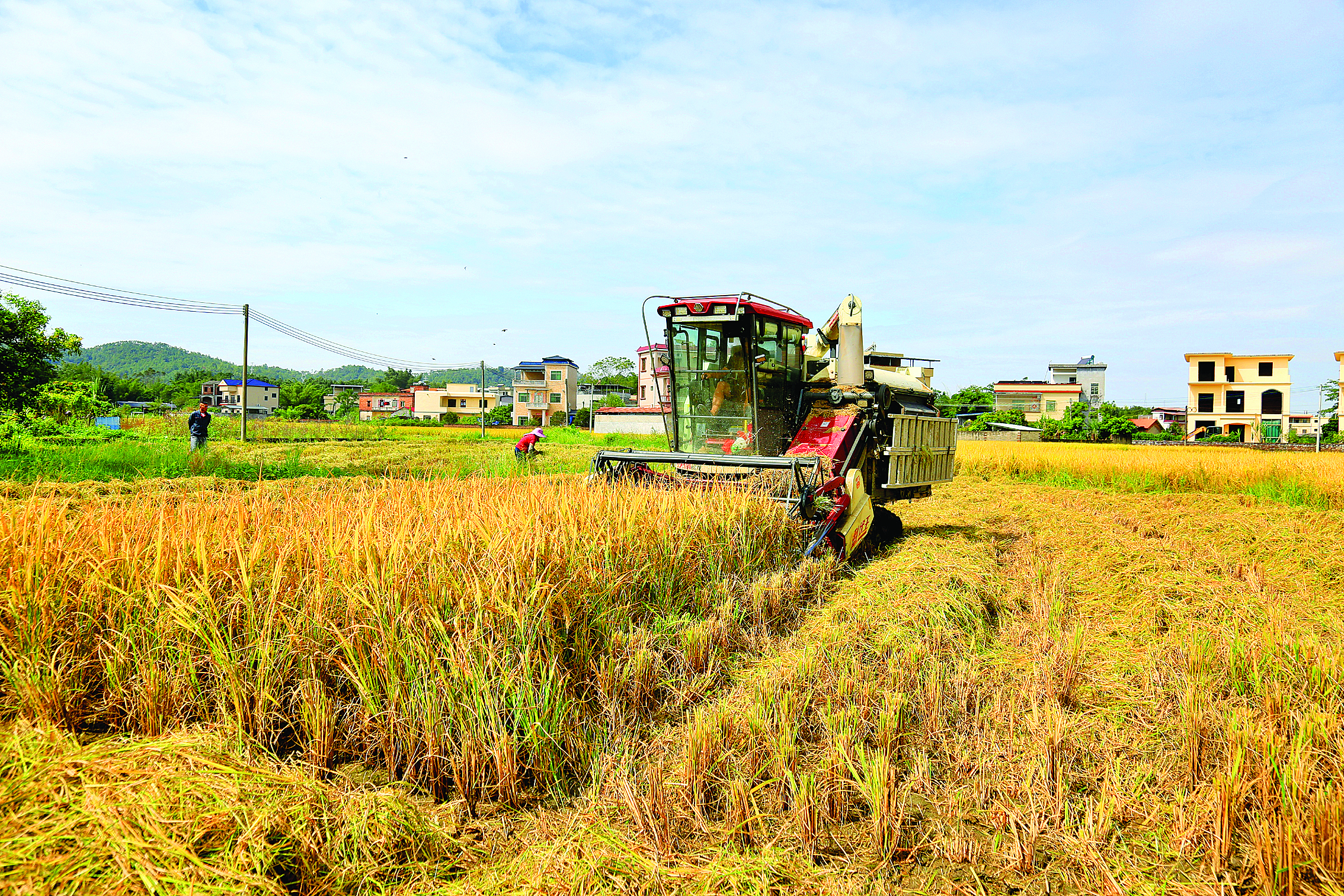 平陵街道黃沙村鐘屋村民小組晚造水稻開割。 惠州日?qǐng)?bào)記者黃宇翔 特約通訊員黃偉光 攝
