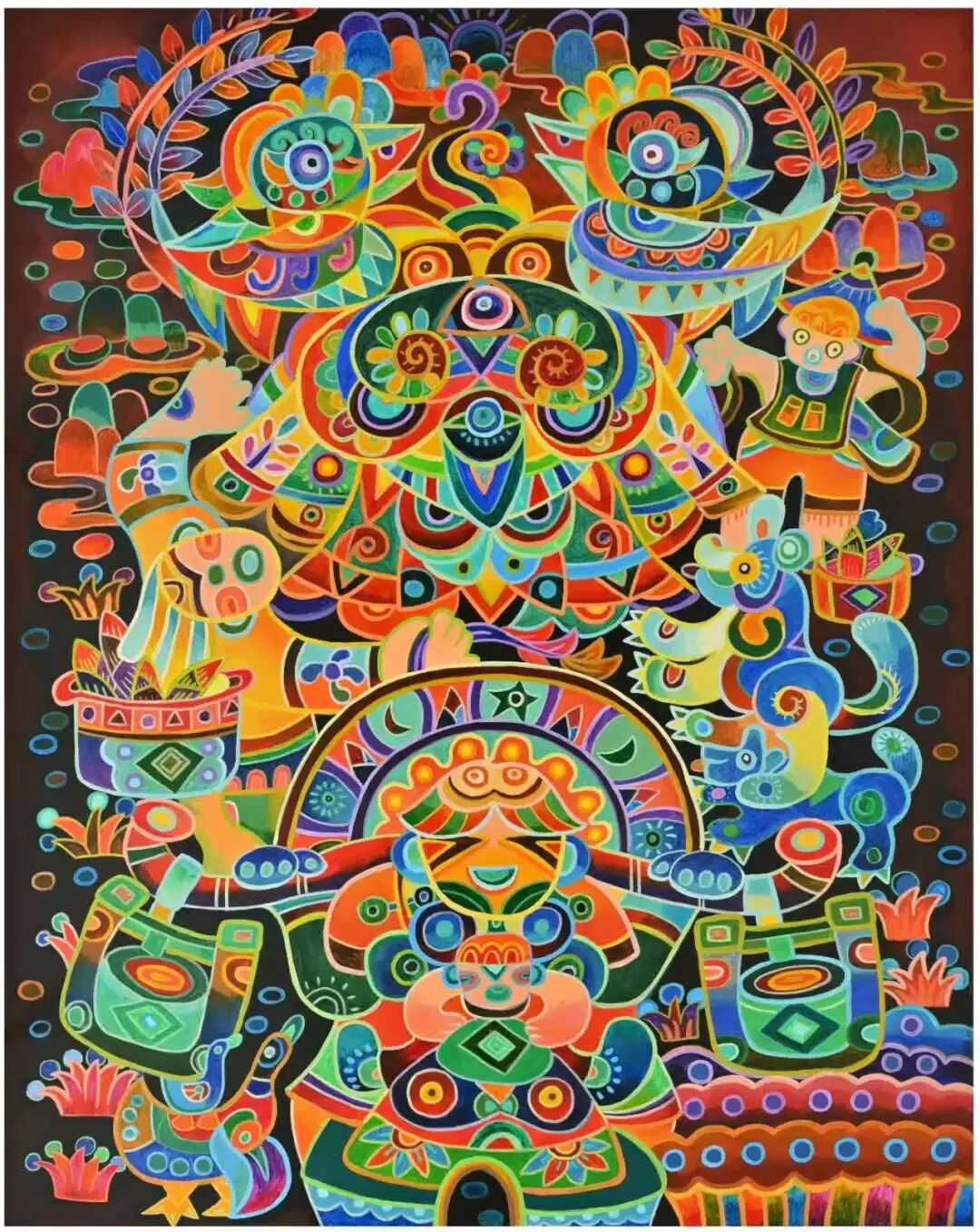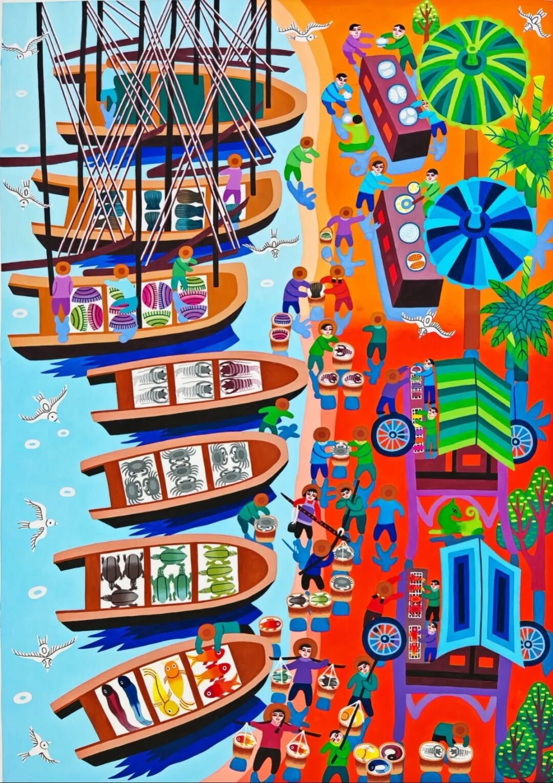 作為“中國(guó)現(xiàn)代民間繪畫畫鄉(xiāng)”“中國(guó)民間文化藝術(shù)之鄉(xiāng)”,龍門農(nóng)民畫多年來堅(jiān)持以濃墨重彩記錄生活本真,用質(zhì)樸筆觸傳遞鄉(xiāng)土情懷。此次入選的4幅作品,延續(xù)了當(dāng)?shù)剞r(nóng)民畫色彩明艷、構(gòu)圖飽滿的藝術(shù)特色,既聚焦嶺南農(nóng)事節(jié)慶、漁鄉(xiāng)市集等傳統(tǒng)題材,又融入新時(shí)代鄉(xiāng)村振興的鮮活氣息,把勞動(dòng)的喜悅、豐收的盛景和群眾對(duì)美好生活的向往,實(shí)實(shí)在在地畫在了紙上,成為嶺南民俗文化的生動(dòng)寫照。