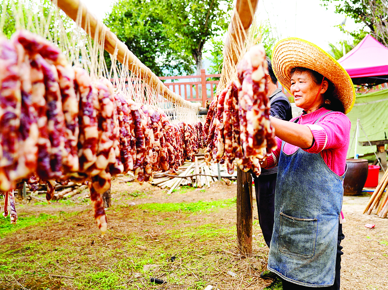 地派鎮(zhèn)村民趕制臘味。 惠州日報記者黃宇翔 通訊員龍融心 攝