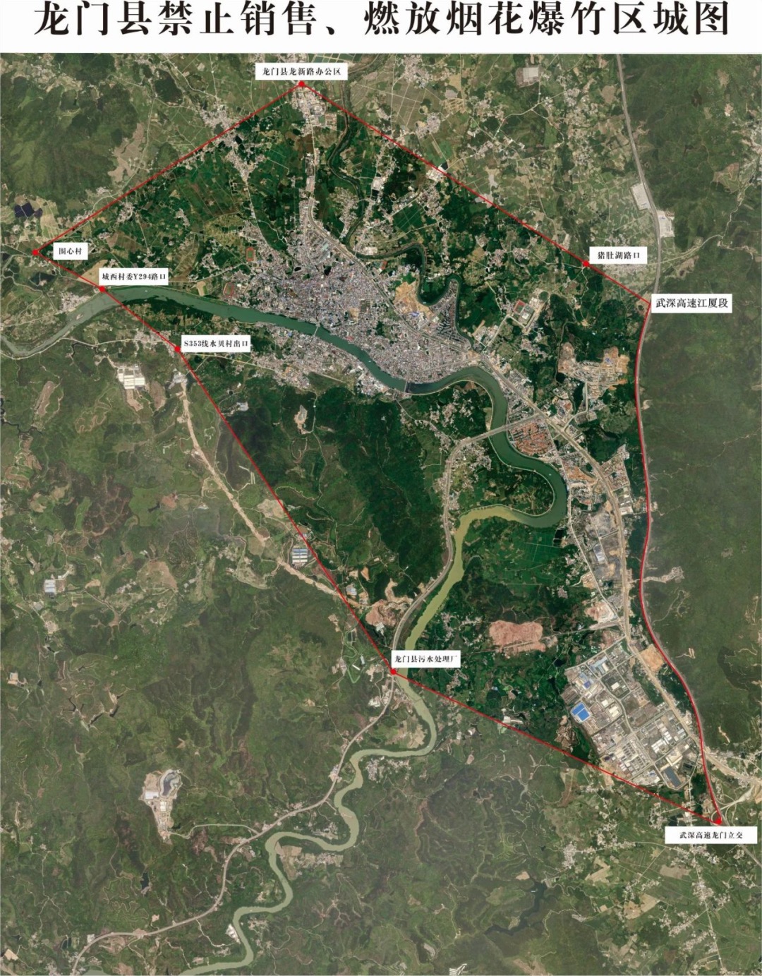 為有效防范因煙花爆竹引發(fā)的火災(zāi)、人身傷害事故,減少大氣污染,切實(shí)保障人民群眾生命財(cái)產(chǎn)安全和身體健康,龍門明確劃定縣城及周邊部分區(qū)域?yàn)闊熁ū窠劢艆^(qū)(具體范圍詳見下圖),嚴(yán)禁任何單位或個(gè)人在該區(qū)域內(nèi)銷售、儲(chǔ)存、燃放煙花爆竹。