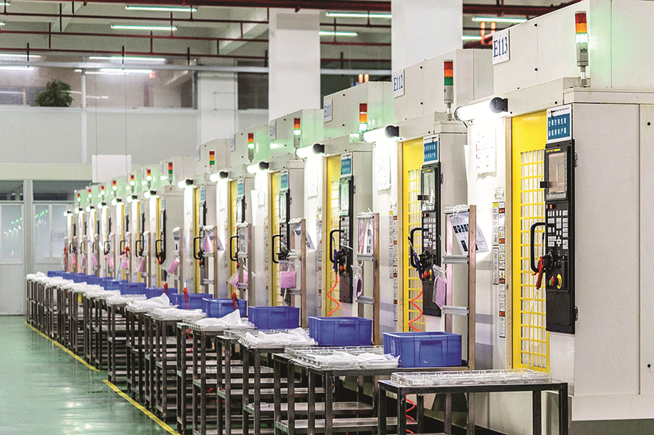 高度自動化是格林精密技術(shù)優(yōu)勢的具體體現(xiàn)。在生產(chǎn)管理方面,格林精密長期實施精益生產(chǎn)管理,擁有國際先進的精密模具制造設(shè)備、全伺服電動精密注塑機、CNC鉆銑中心、五金沖壓和鍛壓設(shè)備、鋁合金壓鑄設(shè)備,以及結(jié)構(gòu)件注塑自動化生產(chǎn)線、結(jié)構(gòu)件表面處理自動化生產(chǎn)線、結(jié)構(gòu)件包布自動化生產(chǎn)線、結(jié)構(gòu)件裝配自動化生產(chǎn)線。公司實施移動模塊式自動化生產(chǎn)模式,具備快速響應(yīng)客戶需求的柔性化生產(chǎn)管理能力,可助力客戶新產(chǎn)品快速上市,搶占市場先機。