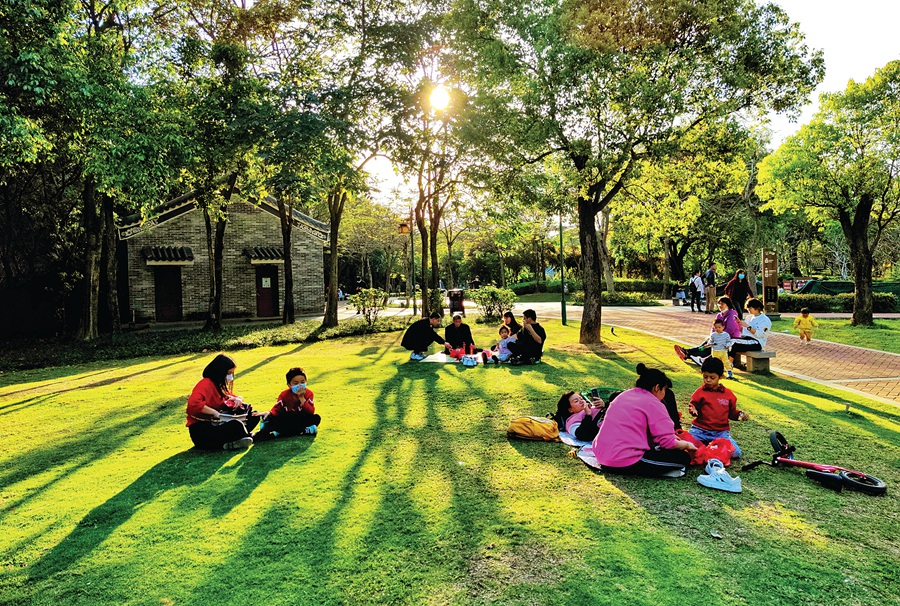 陽光正好,市民在公園享受愜意時光。