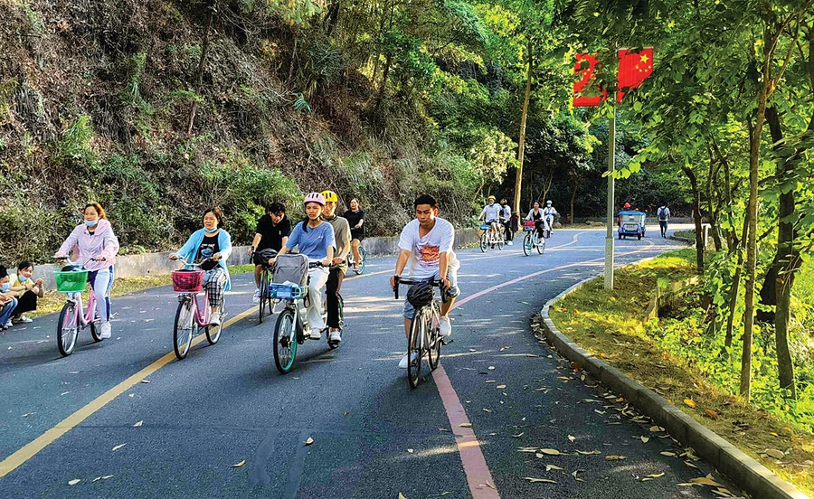 紅花湖綠道,市民樂享騎行。