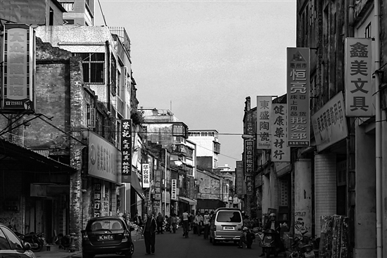 幾度興衰沉浮,幾許唏噓感慨。在水東街上游走,佇立于古舊的騎樓前,能感受到它的滄桑。每一次去都會(huì)有新的認(rèn)識,水東街正是因?yàn)轵T樓的存在,才變得意韻深長。一間茶館中,幾位老人正在屋內(nèi)悠閑地喝茶聊天,安詳怡然,仿佛一群大隱于市井的隱者,偶爾有三三兩兩衣著時(shí)髦的行人走過來,倒也有一種歷史與現(xiàn)實(shí)交替的感覺。
