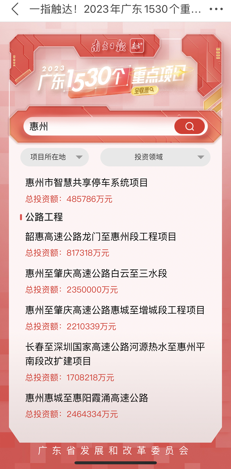 1月12日,廣東省十四屆人大一次會(huì)議期間,南方日?qǐng)?bào)、南方+客戶端聯(lián)合廣東省發(fā)展改革委,推出“大項(xiàng)目搜索引擎”融媒體產(chǎn)品,公布了2023年廣東1530個(gè)重點(diǎn)項(xiàng)目情況。