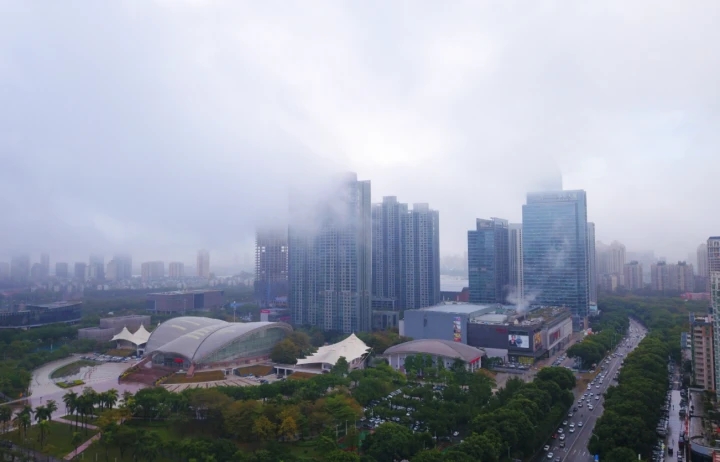 1月13日下午5時(shí)左右,受大霧天氣影響,市區(qū)江北的城市建筑在大霧中若隱若現(xiàn)。當(dāng)日,惠州市氣象臺(tái)發(fā)布“大霧黃色預(yù)警信號(hào)”,多個(gè)地區(qū)能見(jiàn)度小于500米。