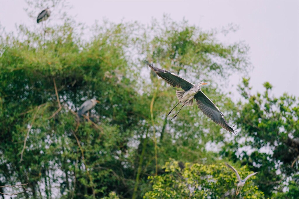 2022年3月27日,惠州西湖上鷺鳥飛翔。