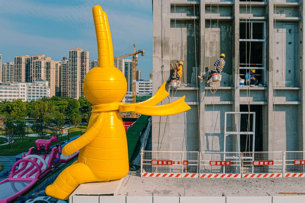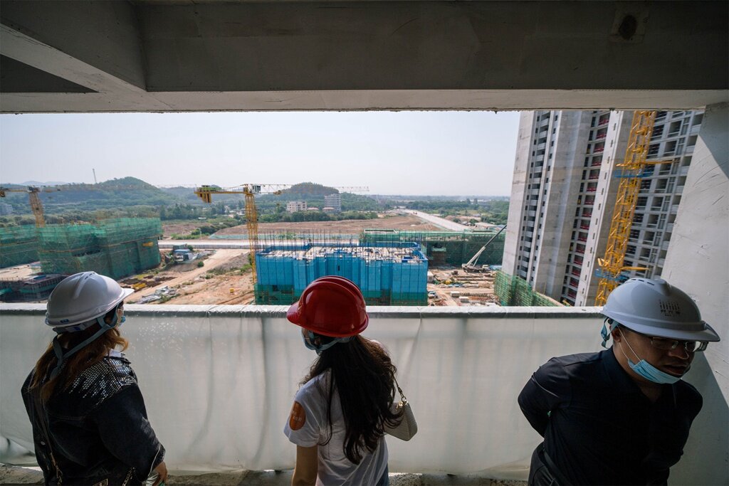 2022年4月8日,惠州馬安一處工地舉行復工復產(chǎn)儀式,業(yè)主在陽臺上觀摩。
