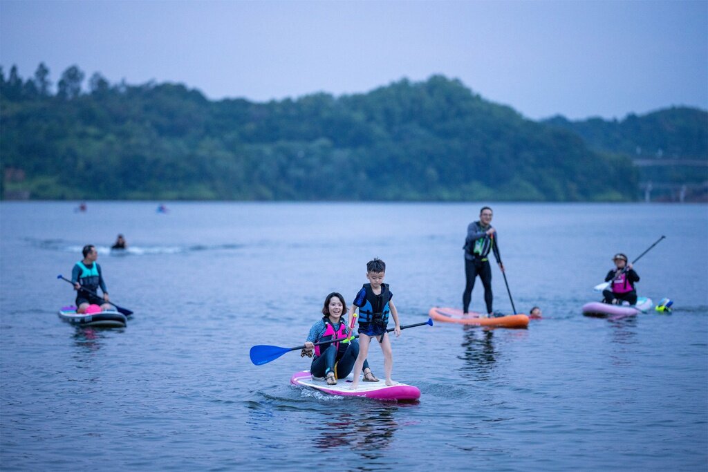 2022年8月28日,惠州白鷺湖的湖面上,漿板運動非常流行。