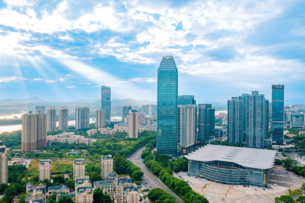 2022年10月1日,惠城區(qū)江北,云層中一處光束射向江北CBD。