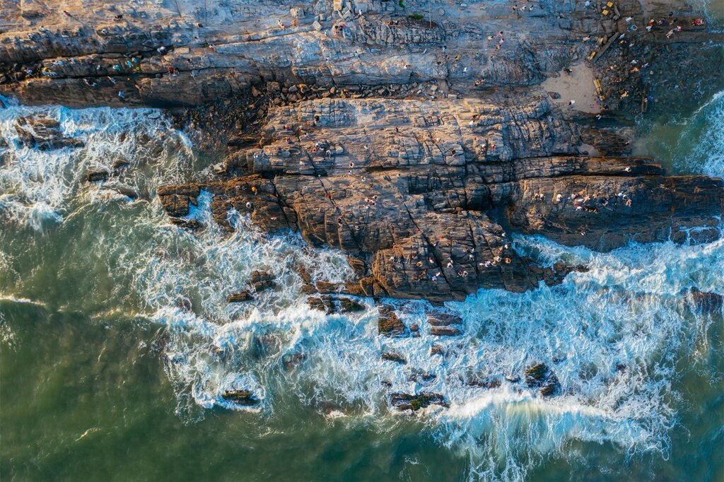 2022年10月2日,大量游人在惠東縣黑排角的礁石上觀光玩耍。