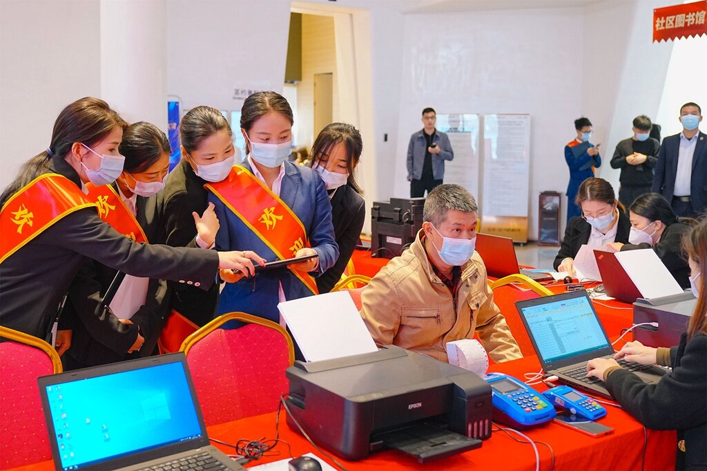2022年12月10日,惠州仲愷一處樓盤舉行交樓儀式,物業(yè)人員積極為收房業(yè)主服務(wù)。