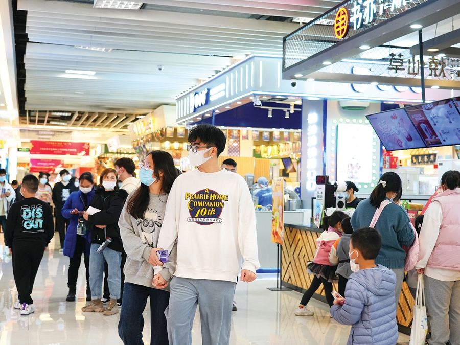 市區(qū)江北華貿(mào)天地內(nèi)人頭攢動。惠州日報記者湯渝杭 張藝明 攝