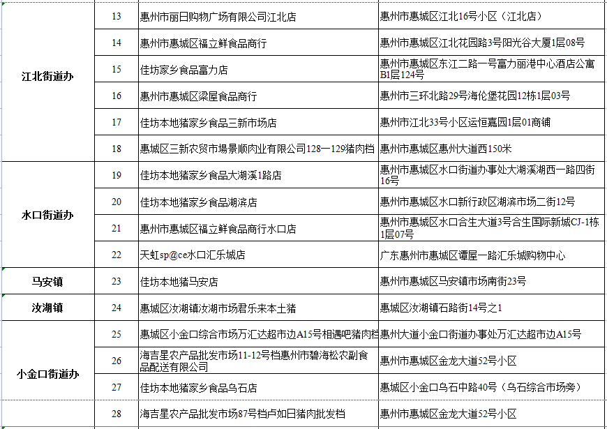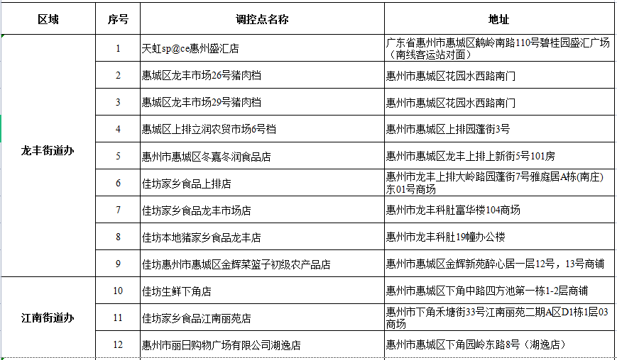 市場(chǎng)豬肉價(jià)格調(diào)控點(diǎn)匯總表
