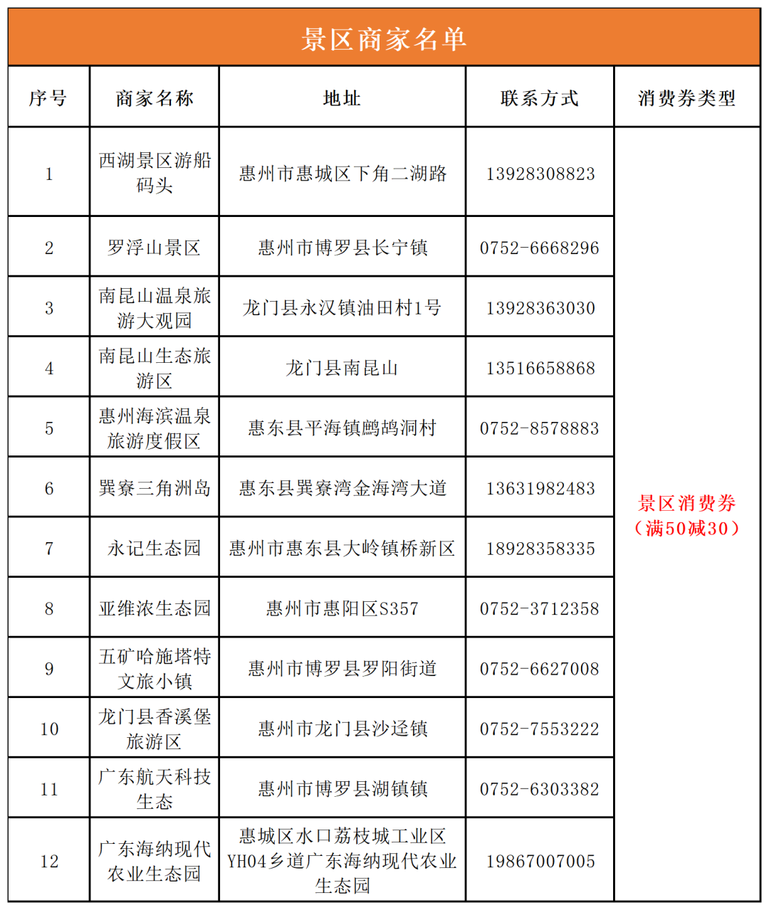 涵蓋了惠州市一批A級(jí)景區(qū)、精品酒店和民宿
