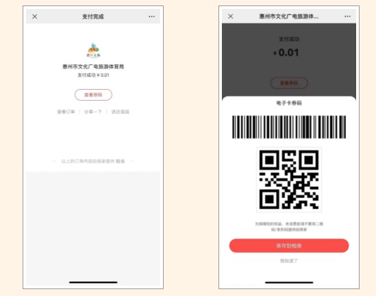 支付完成后,在頁面內(nèi)點(diǎn)擊“查看券碼”