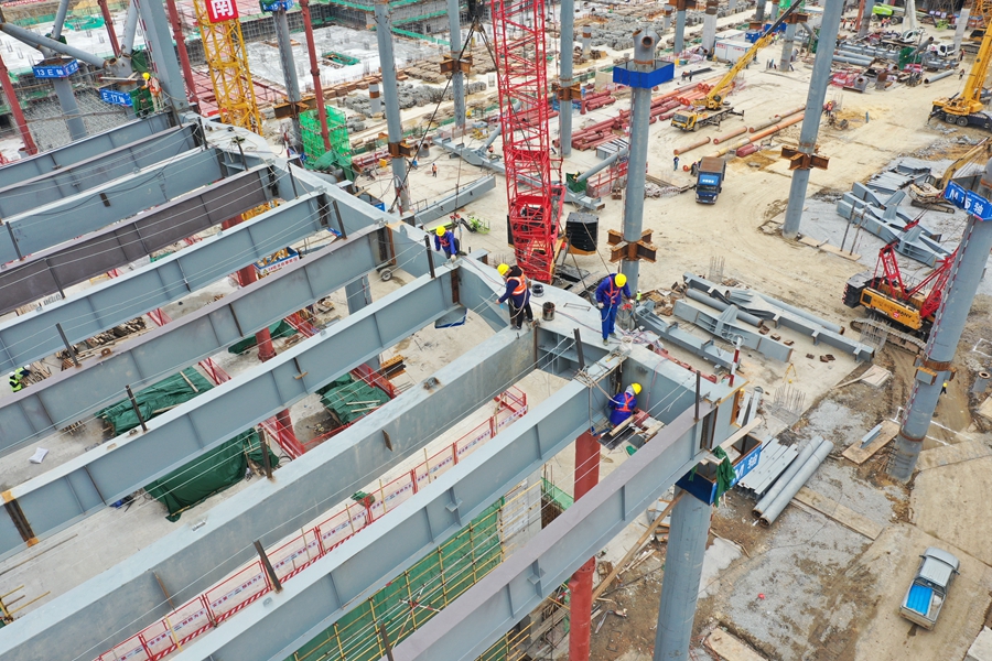 站房鋼結(jié)構(gòu)屋蓋鋼梁吊裝計(jì)劃下月完成
