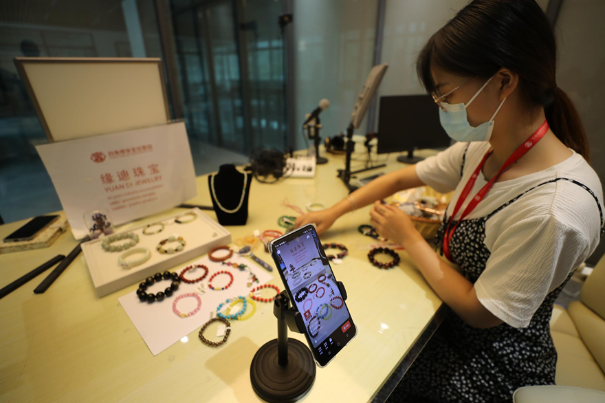 商家開設(shè)直播平臺,做直播帶貨。惠州日報記者楊建業(yè) 攝