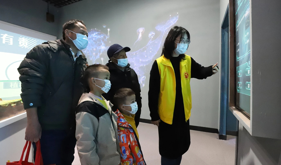 1月26日,大學(xué)生志愿者在市科技館開(kāi)展志愿服務(wù),引導(dǎo)小朋友如何進(jìn)行互動(dòng)地理知識(shí)操作。