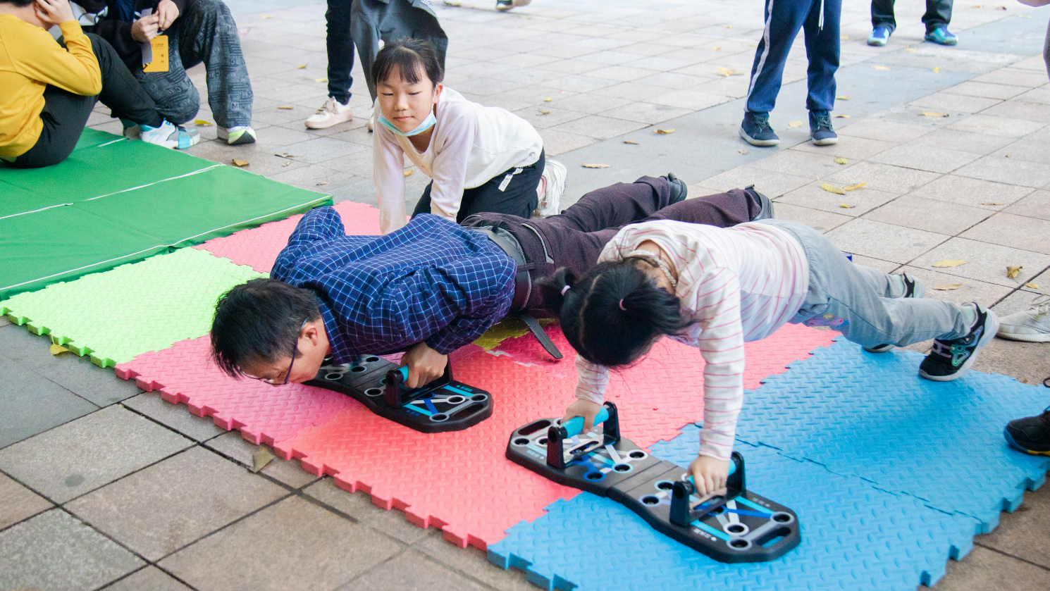 騎單車、走繩索、推冰壺、躍障礙……在美地花園城小區(qū),“少年勇士”“旱地冰壺”“扁帶英雄”“勇闖天涯”等13個趣味運動項目在小區(qū)空地上舉行,不少小區(qū)居民帶上小孩前來參與。根據比賽規(guī)則,完成10個項目后可以獲得相關獎勵。
