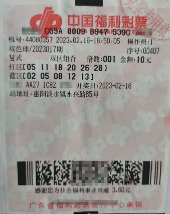 雙色球第2023017期于2月16日晚開獎,當(dāng)期全國共開出一等獎6注,廣東中出的唯一一注一等獎花落惠州市惠陽淡水鎮(zhèn)永興路65號44080357網(wǎng)點,這也是惠州今年中出的第一個雙色球一等獎。