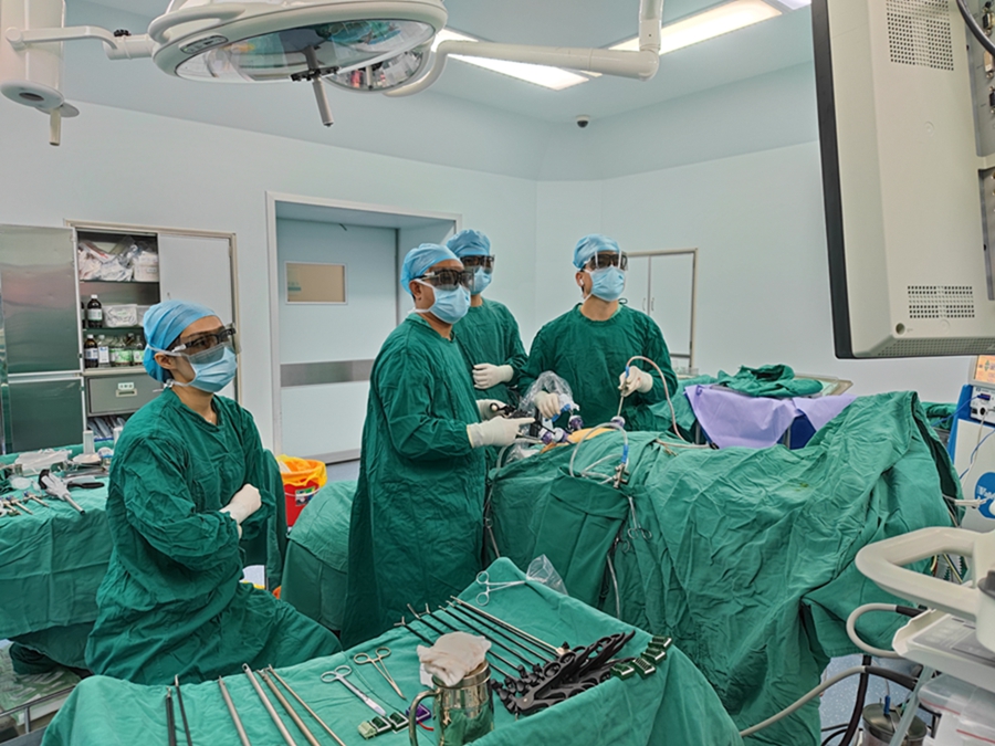 作為“刀尖上的舞者”,該科室還常規(guī)開展普通外科最頂尖、最具難度的手術(shù)——全腹腔鏡下胰十二指腸切除術(shù),開展腹腔鏡胃減容手術(shù)(減肥手術(shù))。此外,科室負(fù)責(zé)惠城區(qū)急危重病患搶救,成功率高,大部分急危重病例實(shí)現(xiàn)搶救手術(shù)微創(chuàng)化。
