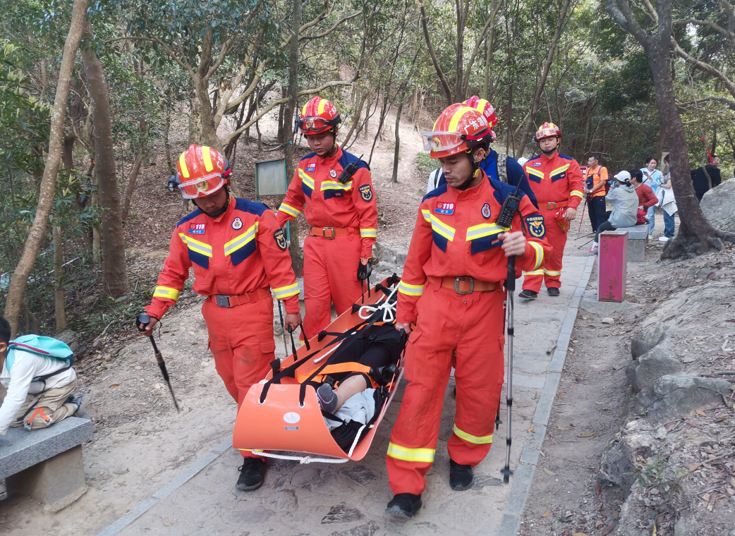 經(jīng)過一個(gè)多小時(shí)的輪流抬送,消防員成功將傷者安全運(yùn)送下山腳,并交由現(xiàn)場救護(hù)車趕往醫(yī)院救治。