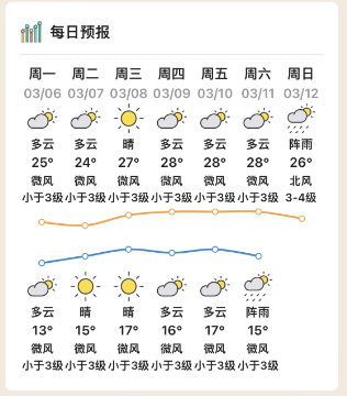 預(yù)計(jì)8-9日,晴天間多云,最低氣溫14~16℃,最高氣溫27~29℃;