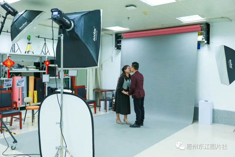 惠州東江圖片社攝影師在影棚為市民拍攝。