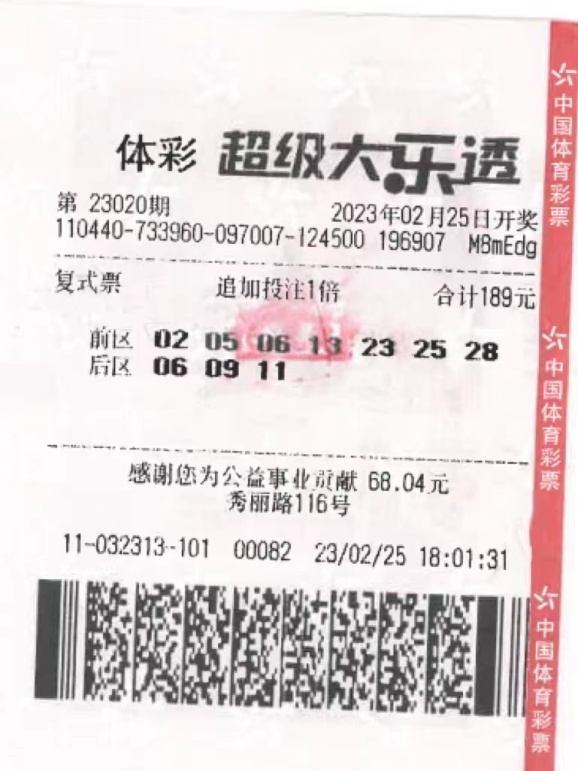 惠州日報(bào)訊 (記者劉乙端 通訊員劉國 董穎)惠州又有人中出千萬元大獎(jiǎng)了!日前,體彩超級大樂透第23020期開獎(jiǎng),前區(qū)開出號碼05、06、23、25、28,后區(qū)開出號碼06、09。廣東唯一1注追加一等獎(jiǎng)出自我市博羅縣園洲鎮(zhèn)4411032313體彩實(shí)體店。3月7日,大獎(jiǎng)得主鄧先生(化名)淡定現(xiàn)身,來到惠州市體育彩票中心領(lǐng)走千萬元大獎(jiǎng),為惠州當(dāng)?shù)刎暙I(xiàn)個(gè)人偶然所得稅199萬余元。