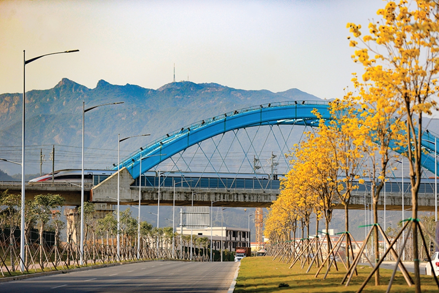 去年8月通車(chē)的金龍大道快速路即將迎來(lái)金色大道季節(jié)。金龍大道快速路自通車(chē)以來(lái),綠化帶種植的黃花風(fēng)鈴木陸續(xù)綻放,即將進(jìn)入盛花期,金龍大道將變成金色大道,成為我市城市的一道靚麗風(fēng)景。金龍大道快速路全長(zhǎng)約8.8公里,按一路一特色的景觀設(shè)計(jì),全線選用胸徑10厘米黃花風(fēng)鈴木865株,間距為10~12米。另外,道路沿線各功能區(qū)域還分別種植了非洲桃花心木、鳳凰木、宮粉紫荊等觀賞樹(shù)種,總綠化面積約18.83萬(wàn)平方米,每個(gè)季節(jié)都有花開(kāi),不僅是一條快速路,更是一條靚麗的景觀路。