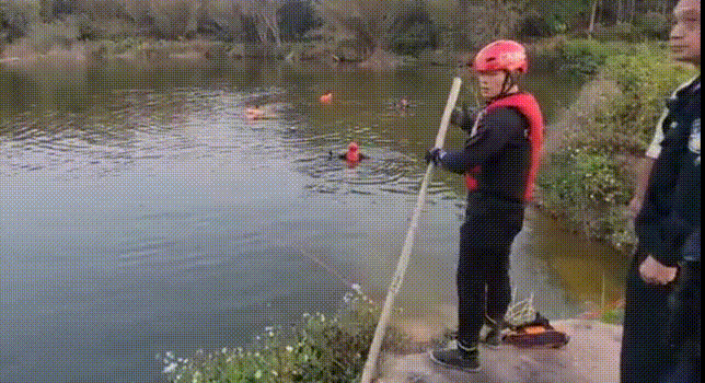 到達(dá)現(xiàn)場后,消防員與民警了解情況得知該男子橫渡池塘撒網(wǎng)捕魚時,突發(fā)狀況掙扎求救。岸邊目擊者由于不會游泳,立即到人員密集處大聲呼救并撥打110電話報(bào)警求助,但回來時已不見男子身影。