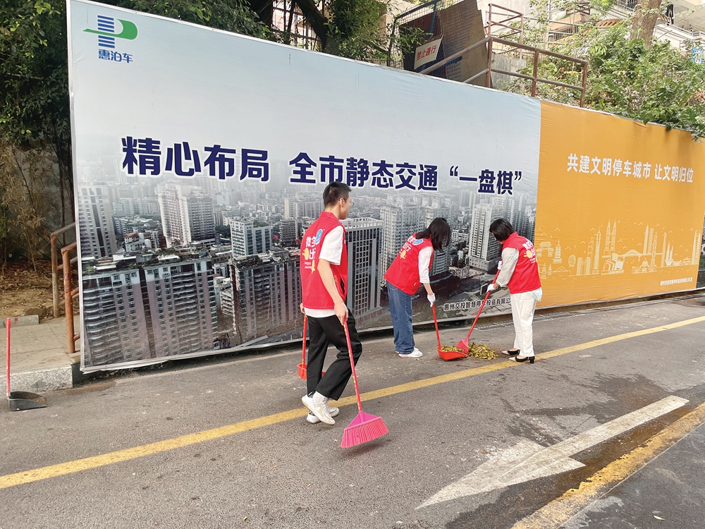記者看到,除提供文明停車(chē)引導(dǎo)服務(wù)外,不少志愿者還主動(dòng)清理停車(chē)場(chǎng)內(nèi)及周邊街道的垃圾。