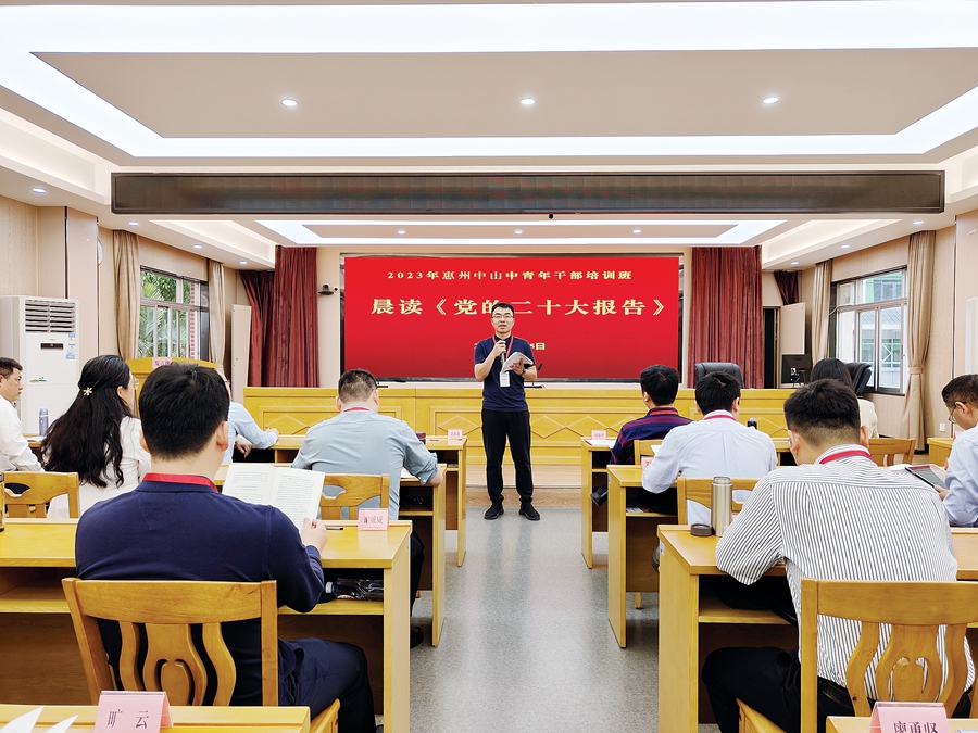 3月24日,開學(xué)第二天的上午8時30分,惠州中山中青班學(xué)員一起齊讀黨的二十大報(bào)告,在晨讀聲中,開啟了新一天的學(xué)習(xí)。接著,省委黨史研究室主任楊建偉從新時代新成就、新征程新任務(wù)、新境界新征程等三個方面,為學(xué)員全面解讀黨的二十大報(bào)告。下午,廈門市委黨校科研與決策咨詢處處長、教授王剛又為學(xué)員作“學(xué)好用好《共產(chǎn)黨宣言》”專題輔導(dǎo)。學(xué)員們的培訓(xùn)緊張而充實(shí)。