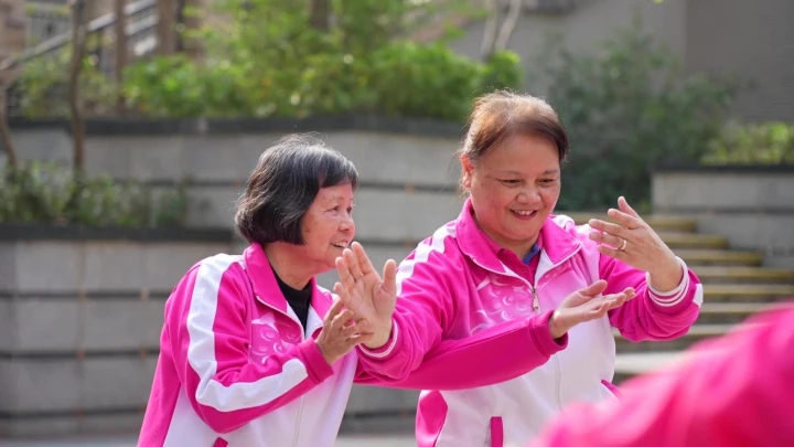 “我們隊員之間、鄰里之間都很和諧,氛圍很好,除了跳舞,大家私底下還會互相分享經(jīng)驗,例如做美食、帶孩子等等,非常開心。”廖蘊冬說。