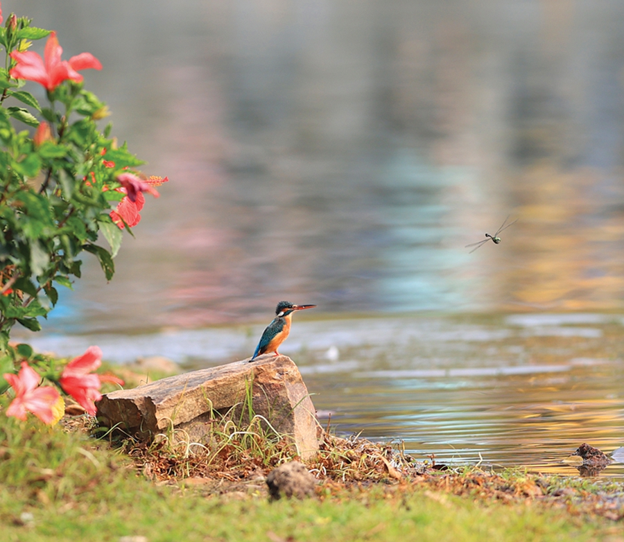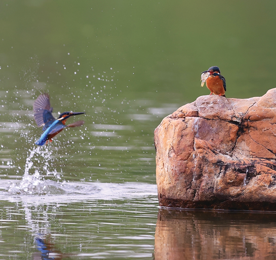 近期,每日清晨6點(diǎn)20分左右,翠鳥(niǎo)夫人便飛到惠州植物園湖中的一塊石頭上,先是扎進(jìn)水中,再飛回石頭上,精心梳洗打扮一番,便在上面鳴叫幾聲,等著翠鳥(niǎo)丈夫的到來(lái)。翠鳥(niǎo)丈夫則把準(zhǔn)備好的早餐叼到翠鳥(niǎo)夫人面前:有時(shí)是小魚(yú),會(huì)把小魚(yú)的頭對(duì)著翠鳥(niǎo)夫人的嘴巴送過(guò)去,這樣吞咽的時(shí)候魚(yú)鰭就不會(huì)扎到喉嚨;有時(shí)是小蝦,他會(huì)把蝦尾對(duì)準(zhǔn)翠鳥(niǎo)夫人的嘴巴,這樣吞咽時(shí)就不會(huì)被蝦槍刺到喉嚨。午餐、晚餐,翠鳥(niǎo)丈夫都不辭辛勞地忙碌著,湖中充足的魚(yú)蝦滿足了翠鳥(niǎo)夫婦的饕餮之欲。丈夫無(wú)微不至的溫情和聰明贏得了翠鳥(niǎo)夫人的芳心,他們每天有2~3次的交配,蜜月期要持續(xù)一個(gè)星期左右。之后,便開(kāi)始孵化幼鳥(niǎo)。