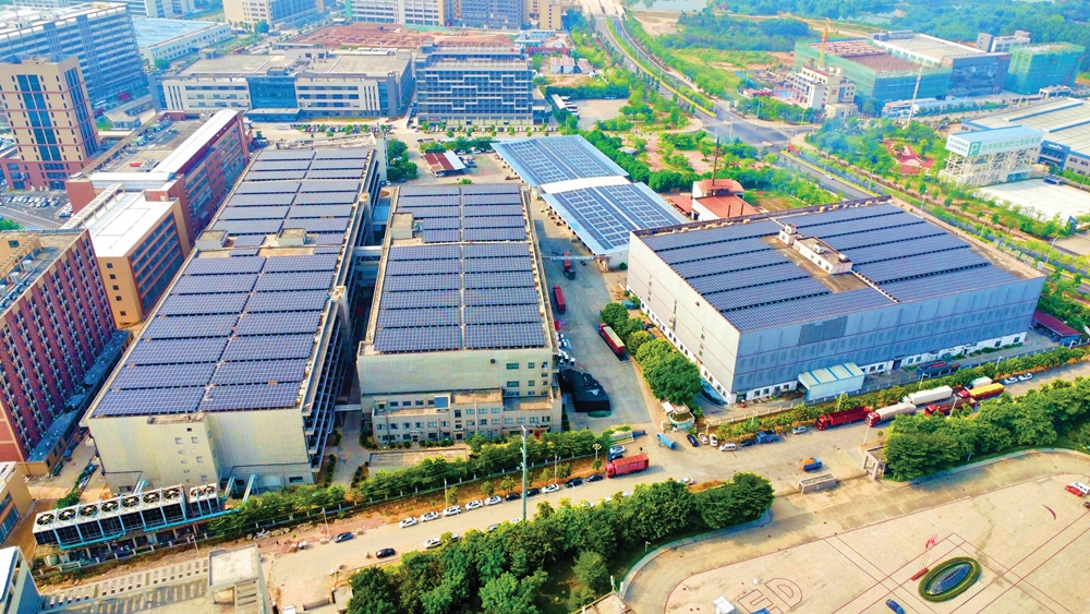 在東江高新科技產(chǎn)業(yè)園,廣東雪榕生物科技有限公司的廠房屋頂上,太陽能光伏板整齊排列,在陽光照耀下熠熠生輝,把太陽能轉化為電能輸向該公司的各項用電設備。