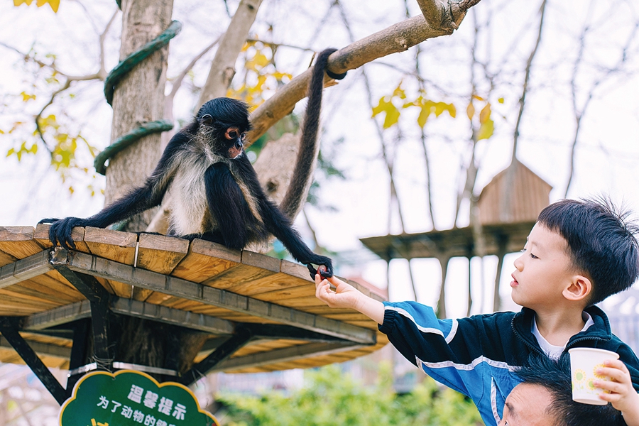 與傳統(tǒng)“花海”項(xiàng)目不同,不少游客來到浮生六季是為動(dòng)物而來。記者在園內(nèi)看到,諸如丹頂鶴、狐獴、火烈鳥、大嘴犀鳥、蜘蛛猴等多種珍稀甚至是來自異國(guó)的動(dòng)物在此長(zhǎng)期駐園展示。在觀賞之余,游客們還有大量機(jī)會(huì)與這些難得一見的野生動(dòng)物進(jìn)行零距離互動(dòng)。據(jù)介紹,園區(qū)與國(guó)內(nèi)某知名動(dòng)物園團(tuán)隊(duì)深度合作,引入多種野生動(dòng)物開展觀賞互動(dòng)、科普教育,豐富了生態(tài)園的業(yè)態(tài)。在動(dòng)物養(yǎng)護(hù)、訓(xùn)練以及相應(yīng)景觀設(shè)施設(shè)置等,對(duì)方團(tuán)隊(duì)給予了專業(yè)的支持,同時(shí)以門票分成的方式實(shí)現(xiàn)雙贏。