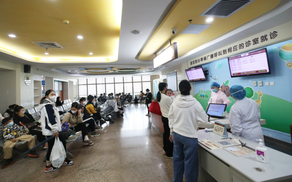 近日,記者在市中心人民醫(yī)院看到,兒科診區(qū)候診患者很多,家長們帶著孩子來就診,普遍反映孩子有發(fā)熱、咳嗽等癥狀。
