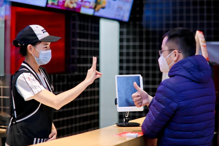 2022年12月14日,在惠州市殘疾人聯(lián)合會的指導下,瑞峰天虹路肯德基“天使餐廳”正式啟動,共有五位殘障人士任職餐廳服務員,這是惠州首家肯德基“天使餐廳”。