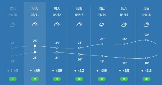 未來(lái)一周天氣預(yù)報(bào)如下
