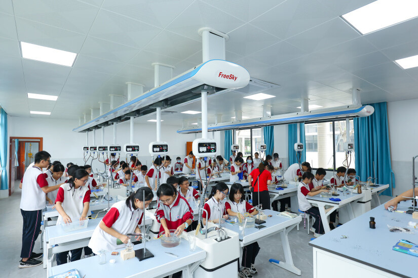 學(xué)生在嶄新的實(shí)驗(yàn)室上課。資料圖片