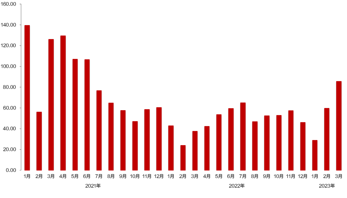 時(shí)間跨度拉長至一季度,該機(jī)構(gòu)數(shù)據(jù)顯示,2023年1~3月全市新建商品住宅網(wǎng)簽套數(shù)為16140套,網(wǎng)簽面積為174萬平方米,網(wǎng)簽面積環(huán)比上升11.35%,同比上升68.05%,網(wǎng)簽市場表現(xiàn)創(chuàng)下近6個(gè)季度新高。3個(gè)月交易房源規(guī)模分別為2726套、5563套、7851套;供應(yīng)房源規(guī)模則分別為1520套、1779套、5394套。