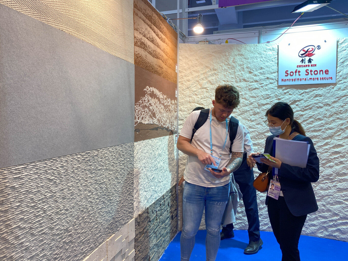 “我們等了三年,對本次廣交會順利開幕,心情非常激動。”惠州市創(chuàng)鑫隆實業(yè)有限公司總經(jīng)理唐代全說,創(chuàng)鑫隆此次攜12款軟石新品全新亮相,而且基本都是有發(fā)明專利的產(chǎn)品,一經(jīng)展出,就受到眾多海內(nèi)外客戶關(guān)注。他表示,軟石是一種新型建筑材料,兼顧軟硬特性,還能像毯子那樣包卷,所以一定要在線下展用手觸摸,才能真切感受體驗到其特性。“疫情三年,我們的外貿(mào)額下跌較大,今年形勢好轉(zhuǎn),如果能回升到疫情前80%的水平,我們會很高興。”