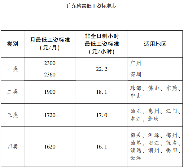 廣東工資標(biāo)準(zhǔn)分為以下四類